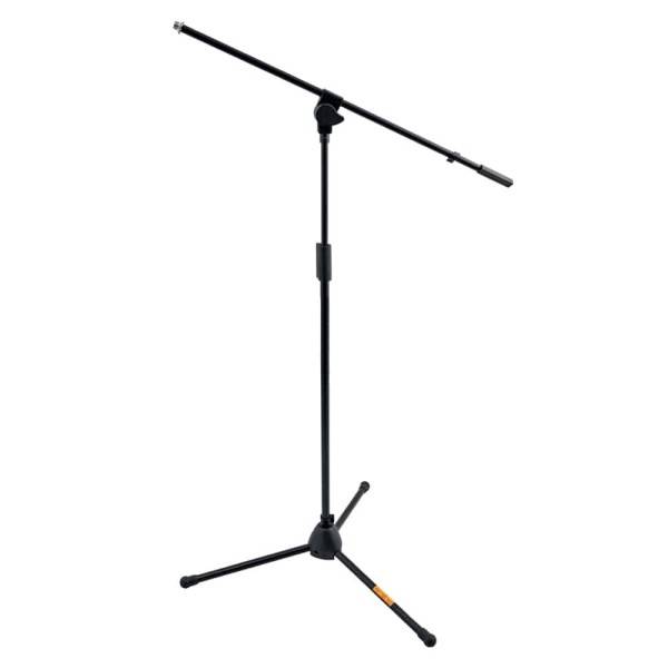 Pie de microfono base tripode con brazo boom extensible, sistema de ajuste en altura con una sola mano, color negro.