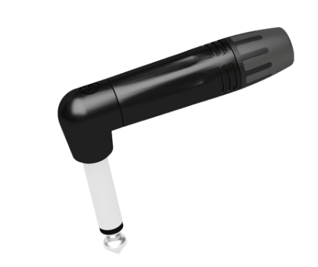 Conector plug mono 1/4 » en ángulo recto, cáscara plateado, contactos negro plateado Nickel