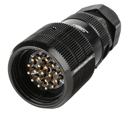 La serie SYNTAX® SSX, diseñada para aplicaciones profesionales y perfectamente compatible con la serie estándar Socapex 419, es extremadamente robusta y está hecha de aleación de aluminio maquinado para construcción de paredes gruesas, con un acabado anodizado negro duro o un acabado pintado de negro. El inserto de contactos es de goma de cloropreno, que permite el uso de contactos extraíbles, ya sea en versión de engarzado o de soldadura. La unidad es completamente hermética a IP67 cuando está acoplada. La seguridad eléctrica y el cumplimiento están garantizados por el aislamiento interno de las carcasas, obtenido a través de un manguito aislante de seguridad para evitar descargas eléctricas, así como los contactos a tierra.