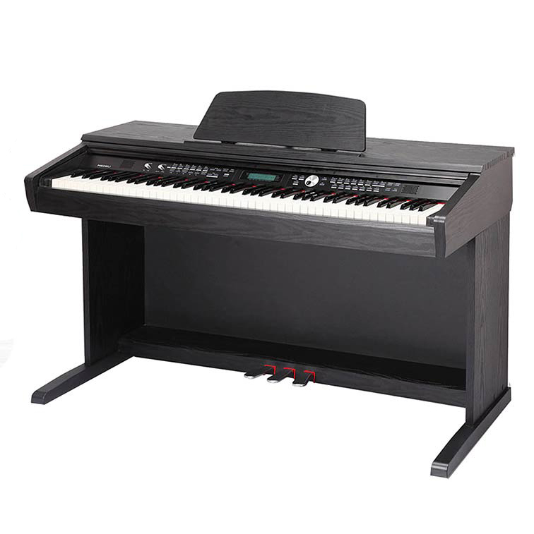 El Medeli DP330 es muy adecuado para los teclados que desean cambiar a un teclado con teclas ponderadas, por supuesto, también es excelente para tocar para el pianista que ocasionalmente quiere hacer música con un acompañamiento. De hecho, el piano está provisto de un módulo de acompañamiento completo, que también se puede encontrar en los teclados, es posible tocar con diferentes ritmos y acompañamientos. Las funciones duales y de armonía también están incorporadas.